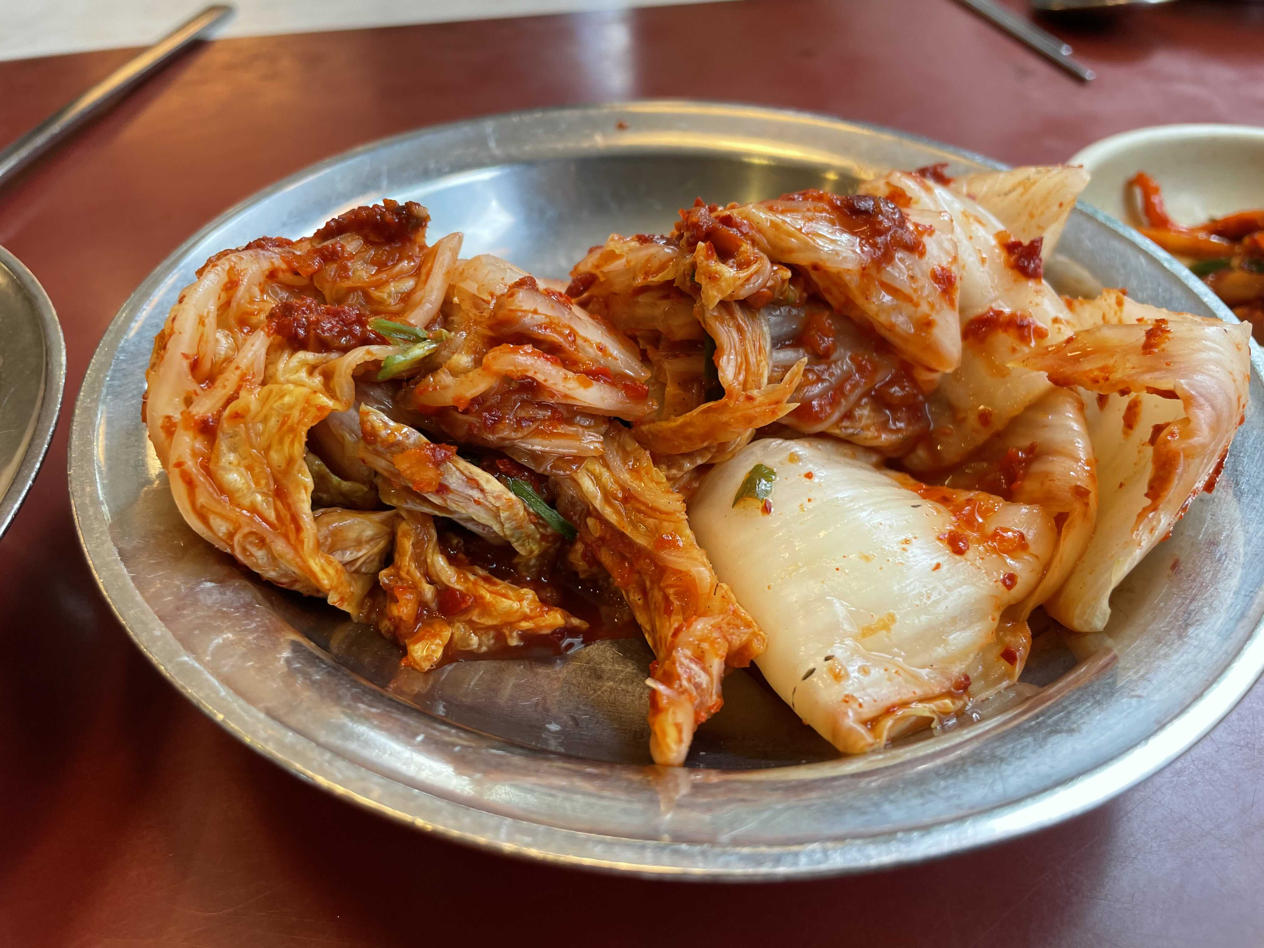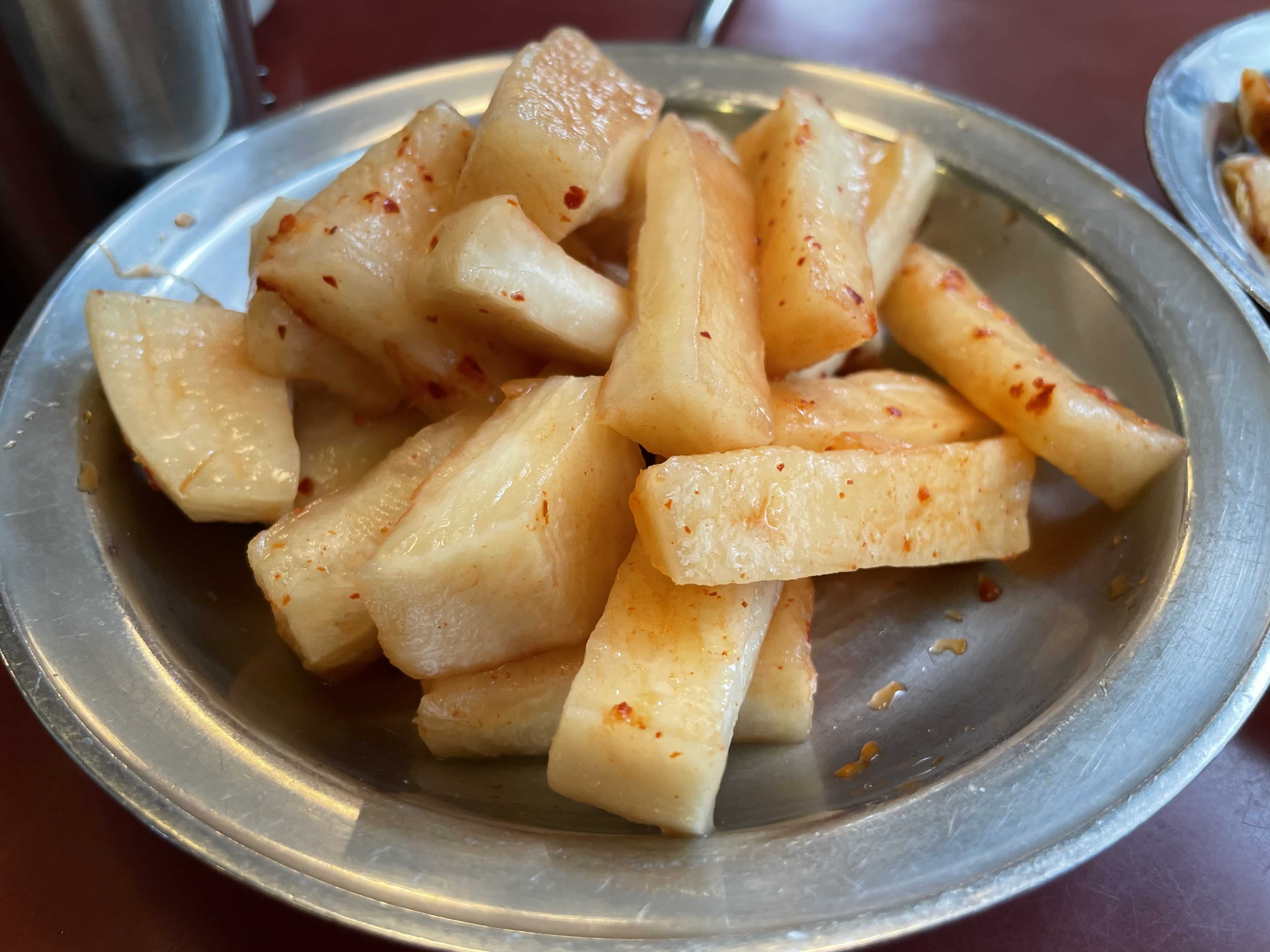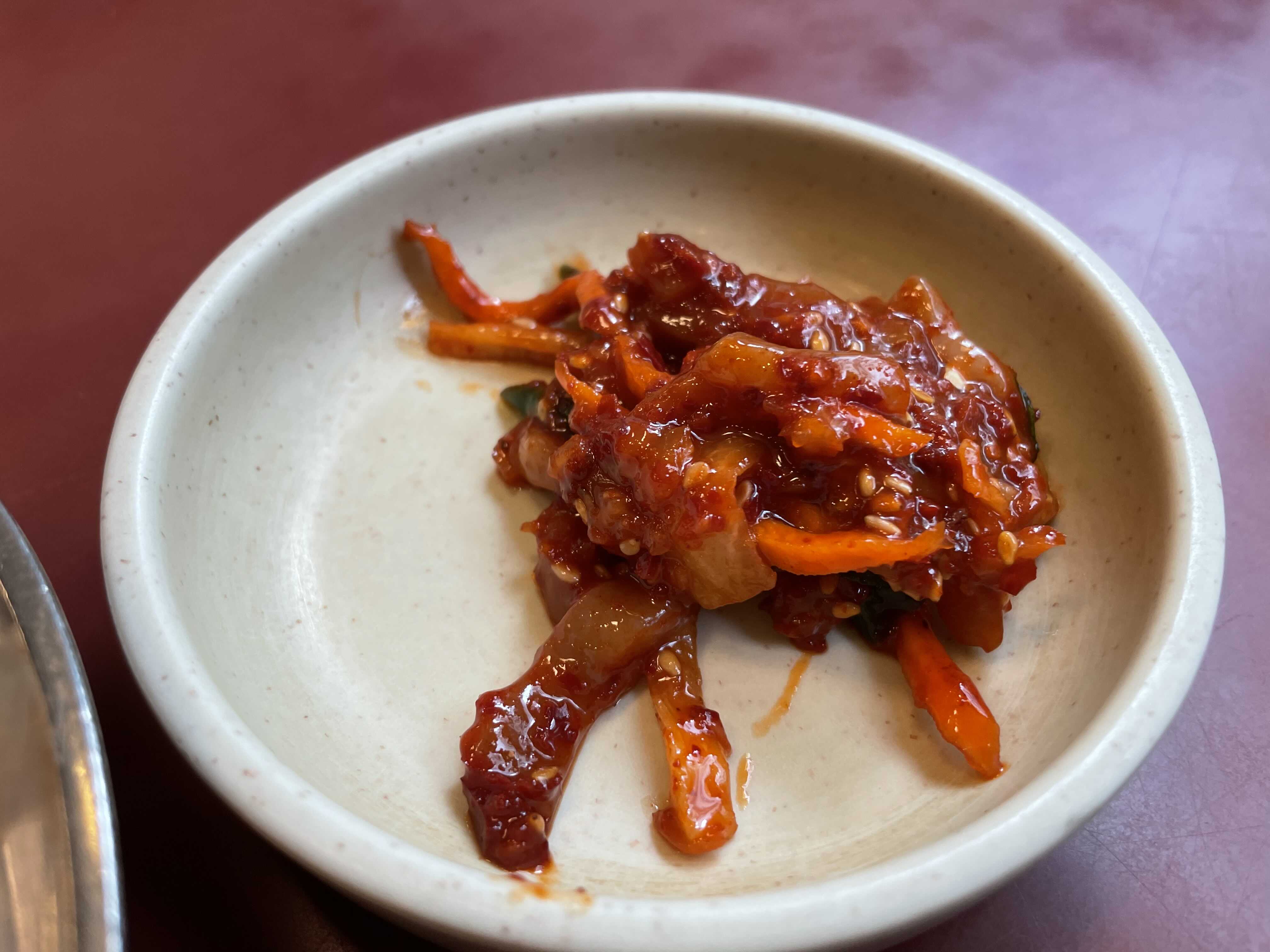 기본잔찬은 배추김치 깍두기 오징어젓갈